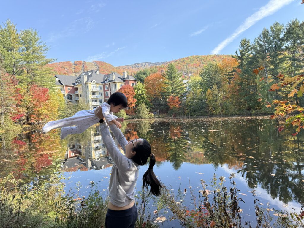 我們選擇了環繞 Lake Tremblant 的步道,沿途空氣清新,腳下踩著厚厚的落葉,發出沙沙的聲響。湖水清澈見底,將岸邊火紅的楓樹倒影得一清二楚,每走一步都是一張無需濾鏡的美照。